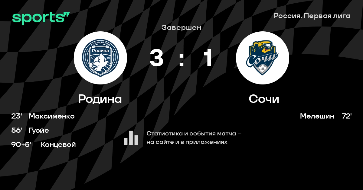 Родина Москва – Сочи – прогноз на матч 6 апреля 2025 года