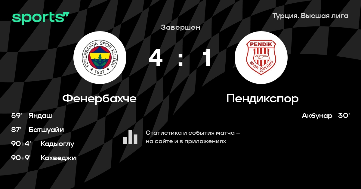 Фенербахче – Пендикспор: Фенербахче забивает в 3 последних матчах против этого соперника