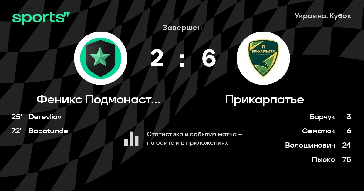 Феникс Подмонастырь – Прикарпатье: коэффициенты