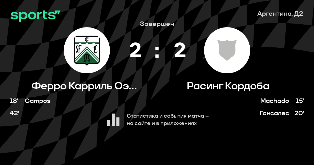 Ферро Карриль Оэсте – Расинг Кордоба: коэффициенты