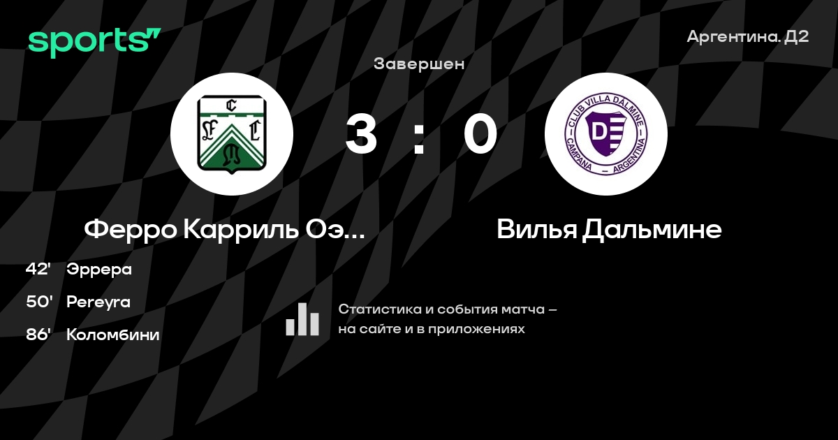 Ферро Карриль Оэсте – Вилья Дальмине: Вилья Дальмине забивает в 3 последних матчах против этого соперника