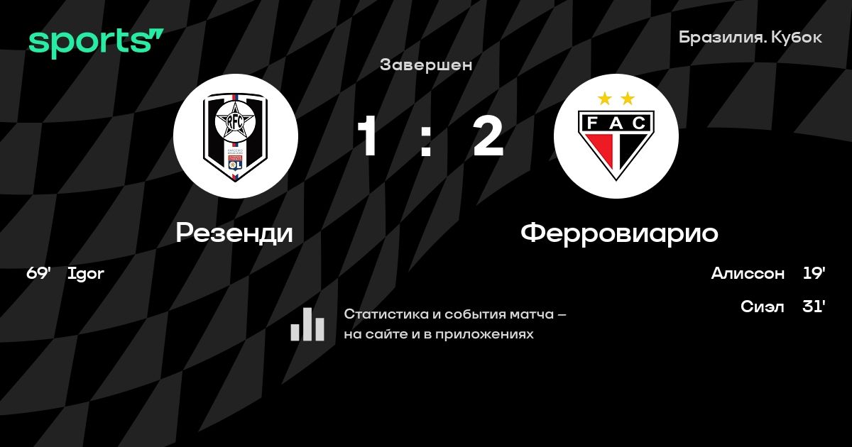 В последних 5 играх Резенди забивает в среднем 0.00 гола за игру
