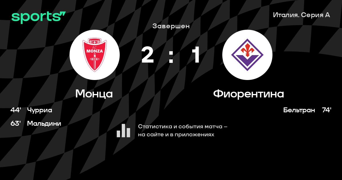Результат прошлой игры в турнире «Серия А»: Монца – Кальяри 1:2. После 19 туров Монца набирает 10 очков и занимает 20 место в турнире. Лучший бомбардир команды – Дани Мота: он забил 4 в 19 матчах. Монца проигрывает в 5 последних матчах в рамках турнира «Серия А». В 7 последних матчах в турнире «Серия А» Монца обязательно забивает. Монца пропускает в 11 последних матчах в турнире «Серия А». В последних 5 играх Монца забивает 5 голов. В последних 5 играх Монца пропускает 10 голов.
