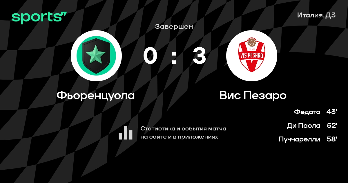 Battaiola - Danovaro, Фризон, Moustapha Yabre, Bondioli - Mattia Fiorini, Ди Джезу, Stronati - Mastroianni, Morello, ДжаниЗапасные: Sorzi, Oddi, Coghetto, Cavalli, Sussi, Куррарино, Пиччинини, Giallombardo, Anelli, Мамона
