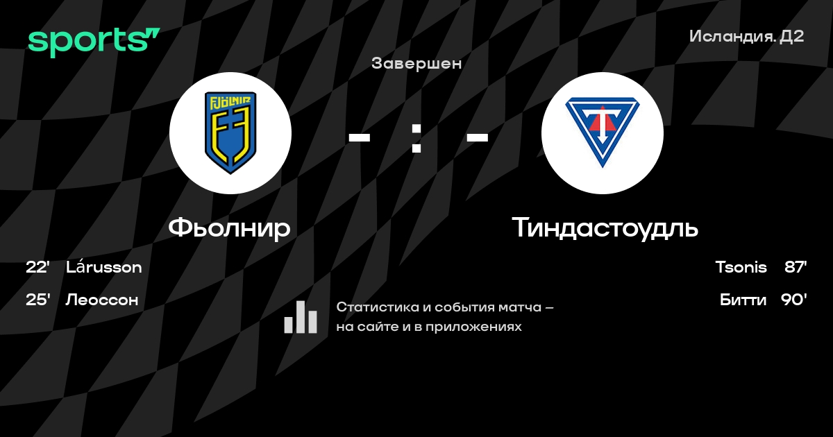 | 1 | Фьолнир | 22 | 14 | 43 | ||