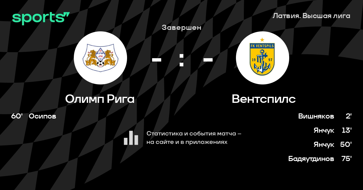 | 1 | Вентспилс | 32 | 22 | 5 | 5 | 75 | 19 | +56 | 71 | ||