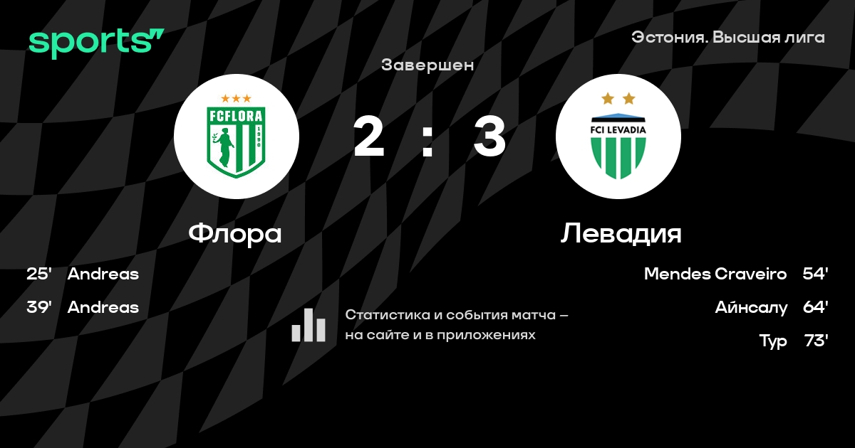 Флора – Левадия: Флора побеждает в 3 последних очных матчах дома