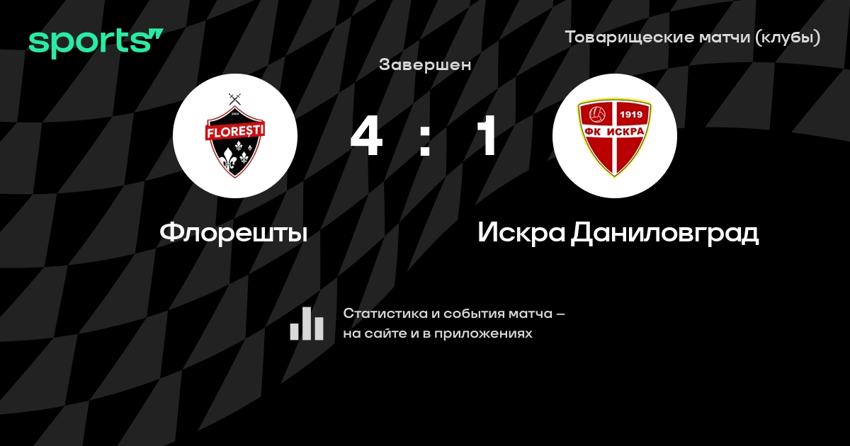 Флорешты – Искра Даниловград: Флорешты забивает в 4 последних матчах против этого соперника