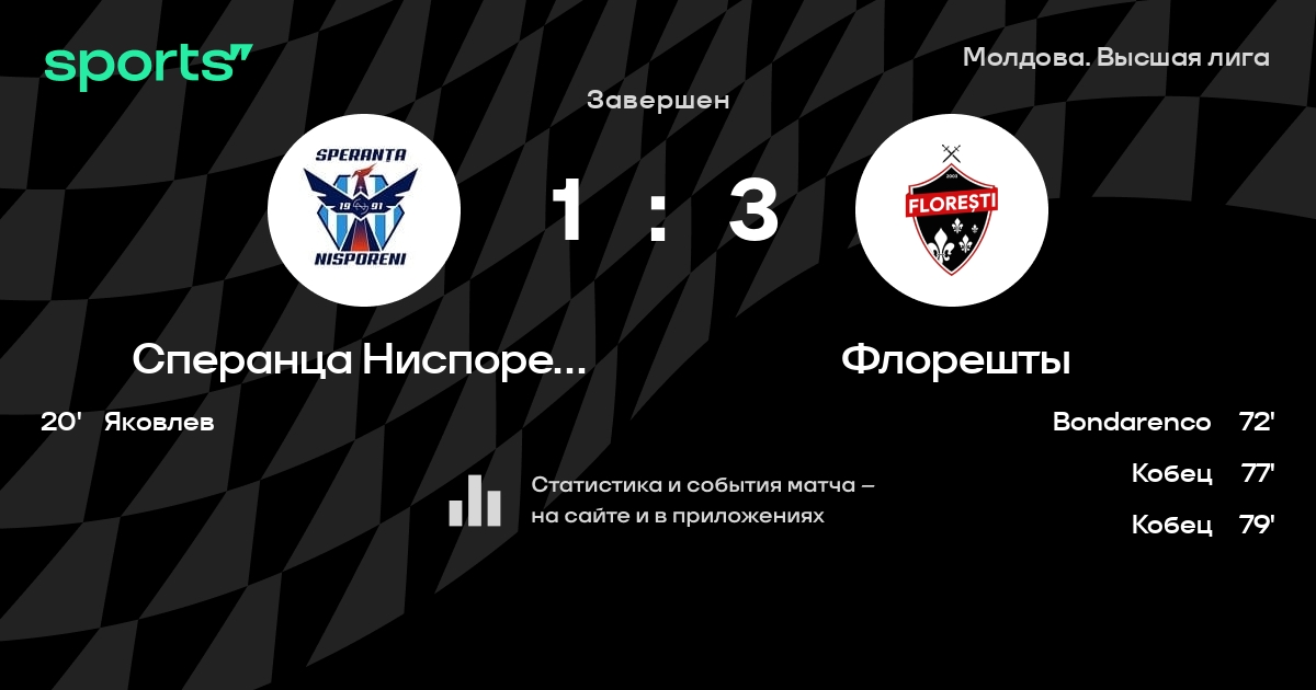 Флорешты не выигрывает в 12 последних матчах в гостях в турнире «Молдова. Дивизион Национала»