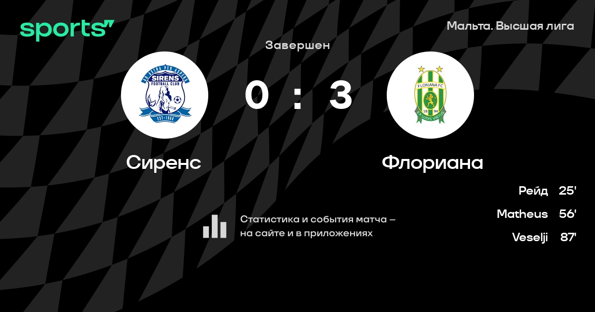 Сиренс – Флориана: Флориана не проигрывает в 5 из 7 последних матчей против этого соперника