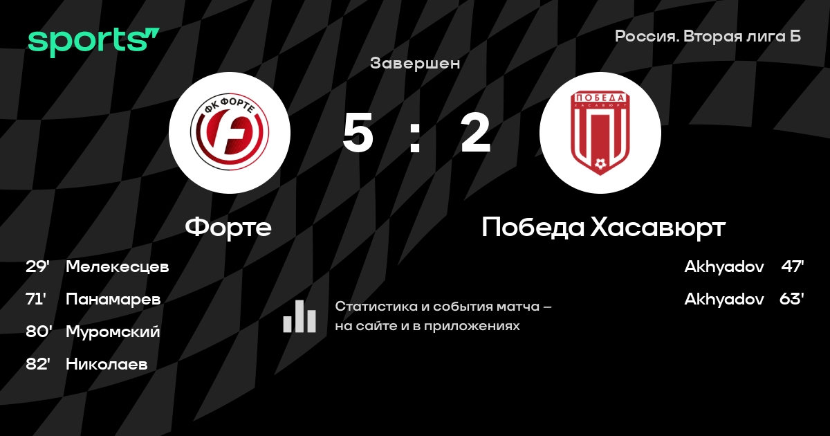 Результат прошлой игры в турнире «Вторая лига»: Динамо Ставрополь – Форте 2:2. После 24 туров Форте набирает 50 очков и занимает 1 место в турнире. Лучший бомбардир команды – Магомед Абакаров: он забил 12 в 23 матчах. Форте не проигрывает в 4 последних матчах в рамках турнира «Вторая лига». В 4 последних матчах в турнире «Вторая лига» Форте обязательно забивает. В последних 5 играх Форте забивает 12 голов. В последних 5 играх Форте пропускает 5 голов.