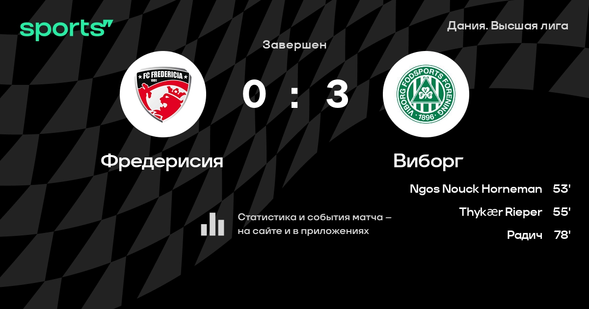 Результат прошлой игры в турнире «Суперлига»: Копенгаген – Фредерисия 3:2. После 14 туров Фредерисия набирает 11 очков и занимает 11 место в турнире. Лучший бомбардир команды – O. Buch: он забил 7 в 14 матчах. Фредерисия проигрывает в 6 последних матчах в рамках турнира «Суперлига». Фредерисия пропускает в 8 последних матчах в турнире «Суперлига». В последних 5 играх Фредерисия забивает 4 голов. В последних 5 играх Фредерисия пропускает 14 голов.