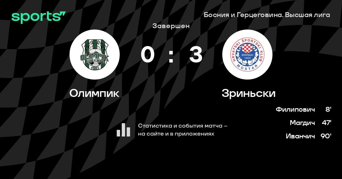 Олимпик – Зриньски: Зриньски не проигрывает в 6 из 8 последних матчей против этого соперника.