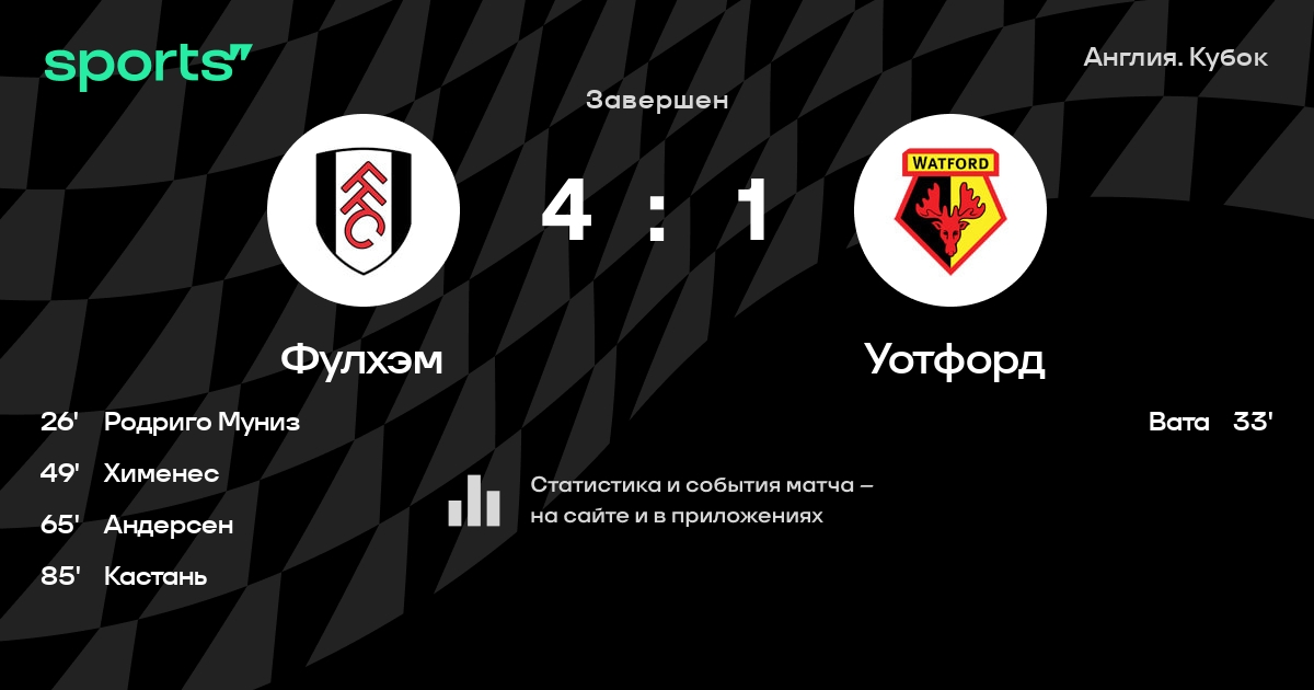 Бенда - Сессеньон, Куэнка, Андерсен, Кастань - Лукич, Перейра, Смит-Роу, Ивоби, Траоре - Родриго МунизЗапасные: Лено, Басси, Диоп, Рид, Кэрни, Кинг, Годо, Уилсон, Хименес
