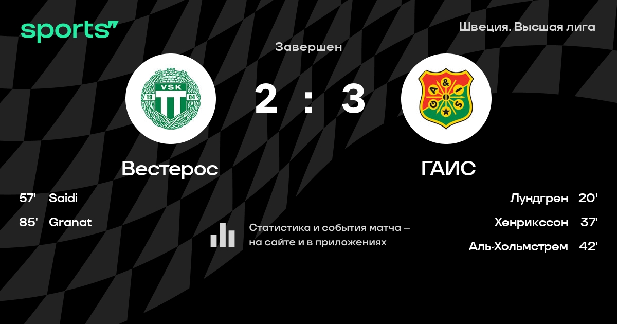 Браттберг - Сманд, Нсабиюмва, Granath - Max Karl Peter Larsson, Линдай, Ask, Alexander Rickard Chadchai Thongla-Iad Warneryd - Johansson, Джебара, SaidiЗапасные: Фагерстрем, Бузайен, Hartzell, Йенссон, Алинви, Gunnarsson, Diabate, Granat, Оффия