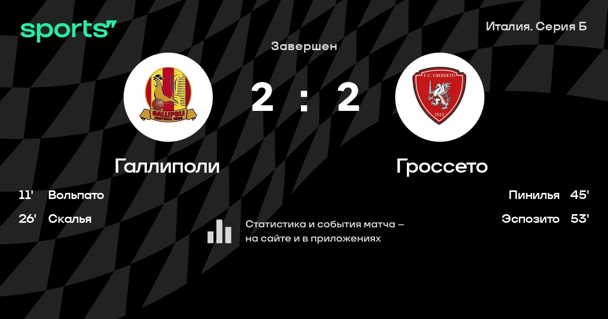 Италия. Серия В. 24-й тур. «Галлиполи» сыграл вничью с «Гроссето»