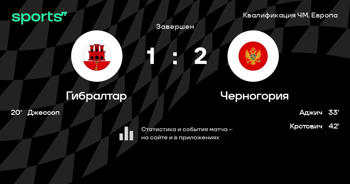 Квалификация ЧМ: шансы Гибралтар – Черногория на победу в отборочном мате чемпионата мира 2026