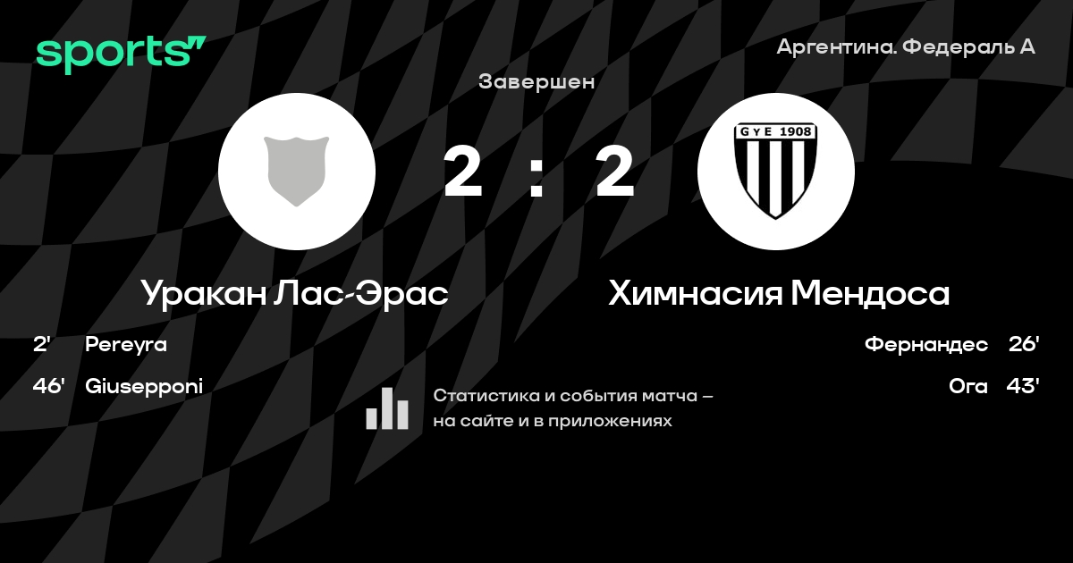 Уракан Лас-Эрас - Химнасия Мендоса: статистика матча