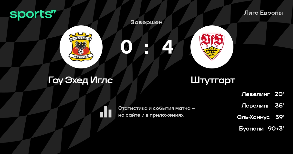Лига Европы: шансы Гоу Эхед Иглс и Штутгарта на победу в матче 5-го тура