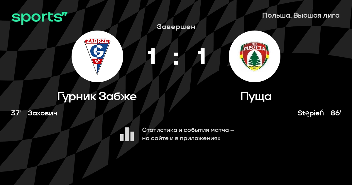 Результат прошлой игры в турнире «Высшая лига»: Гурник Забже – Лех 2:1. После 18 туров Гурник Забже набирает 30 очков и занимает 6 место в турнире. Лучший бомбардир команды – Лука Захович: он забил 5 в 18 матчах. Гурник Забже побеждает в 4 последних матчах в рамках турнира «Высшая лига». В 4 последних матчах в турнире «Высшая лига» Гурник Забже обязательно забивает. В последних 5 играх Гурник Забже забивает 13 голов. В последних 5 играх Гурник Забже пропускает 8 голов.