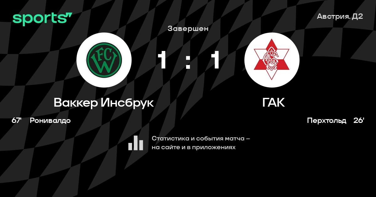 Ваккер Инсбрук – ГАК: Ваккер Инсбрук забивает в 11 из 13 последних матчей против этого соперника