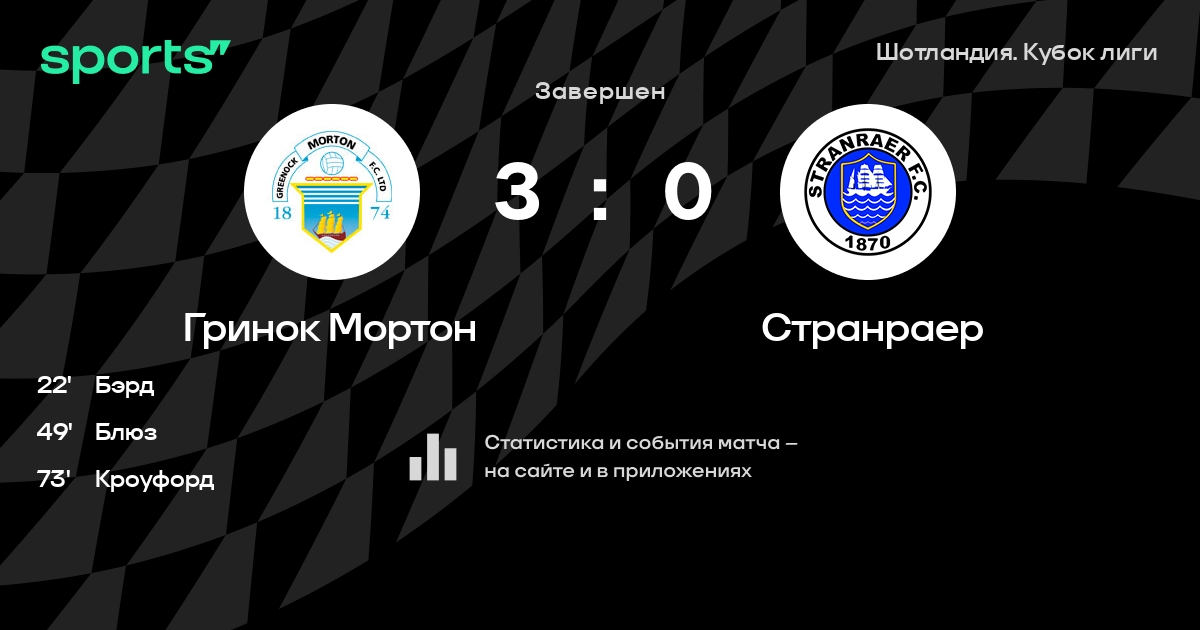 Гринок Мортон – Странраер: Гринок Мортон не проигрывает в 7 из 9 последних матчей против этого соперника