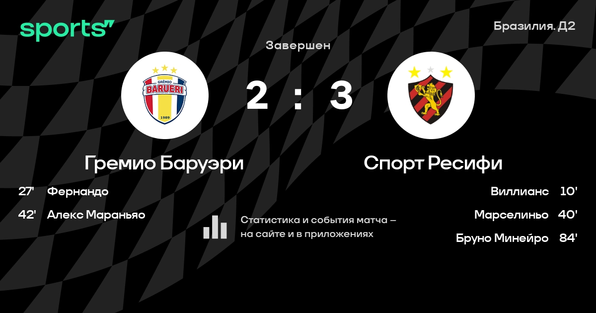 Трансляция Гремио Баруэри - Спорт Ресифи