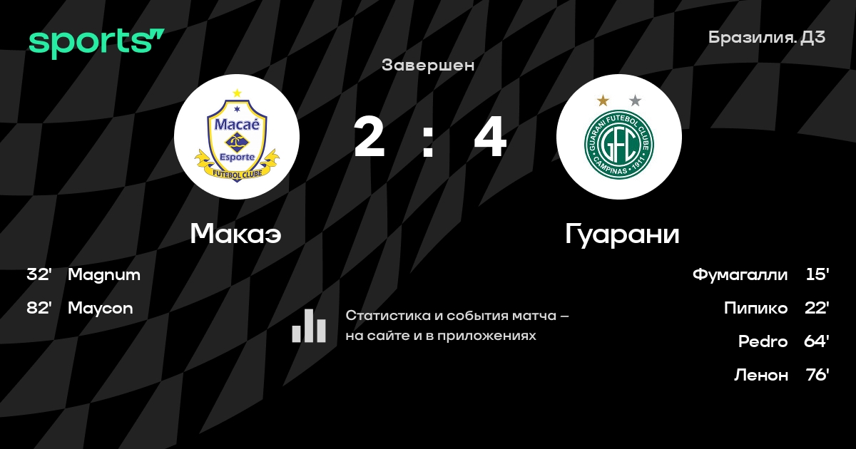 Милтон - Эберт, Гильерме Соуза, Робиньо, Gonçalves Reis Santos - дос Сантос, da Silva, Байяно, Farias Tavares - Дейвизон, Almeida de JesusЗапасные: Ferraz Miranda, Лепу, Тиаго Соуза, dos Santos Conceição Alvarenga, Камбучи, Lopes Guimarães Proença, Rodrigues Perpétuo de Oliveira, Ferreira Ibraim, Бруно Луис, Quintino de Souza, Carvalho Inez