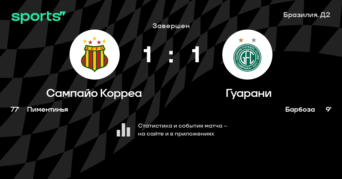 Сампайо Корреа – Гуарани: Гуарани не пропускает в 2 из 7 последних матчей против этого соперника