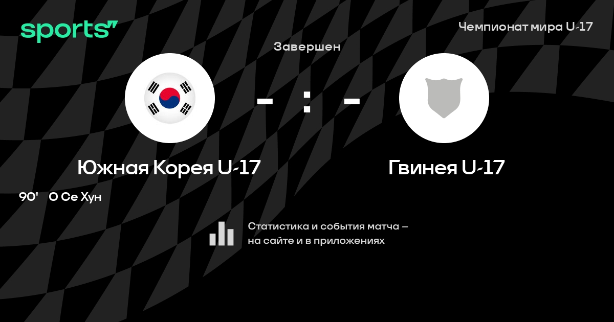 Южная Корея U-17 – Гвинея U-17: коэффициенты