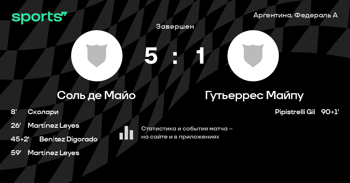 Соль де Майо - Гутьеррес Майпу: статистика матча