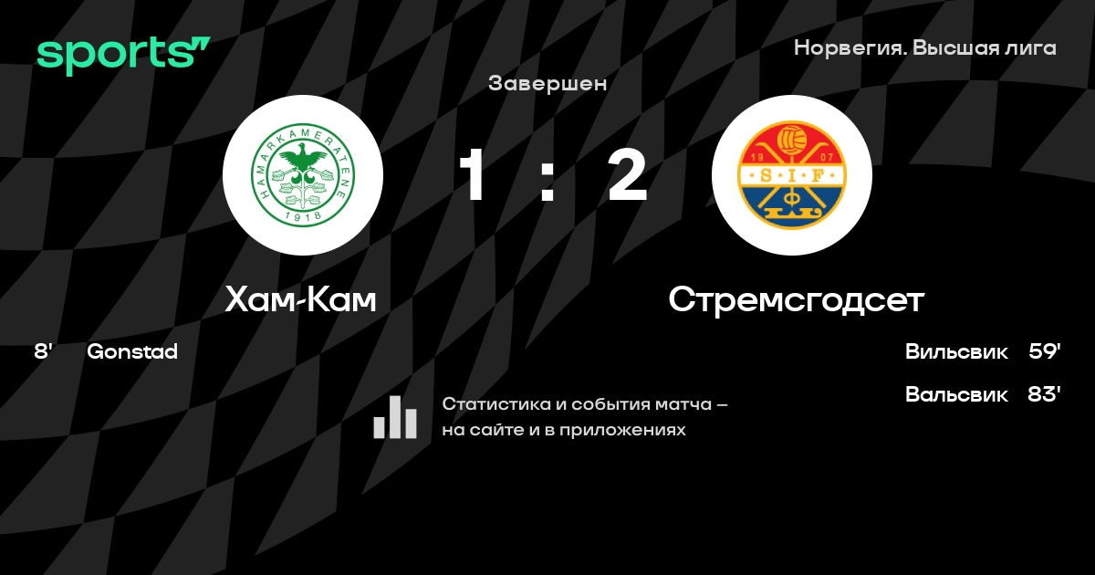 Результат прошлой игры в турнире «Высшая лига»: Хам-Кам – Сарпсборг 1:3. После 20 туров Хам-Кам набирает 21 очков и занимает 13 место в турнире. Лучший бомбардир команды – Кристиан Стремланн Лиен: он забил 6 в 22 матчах. В 3 последних матчах в турнире «Высшая лига» Хам-Кам обязательно забивает. В последних 5 играх Хам-Кам забивает 5 голов. В последних 5 играх Хам-Кам пропускает 9 голов.