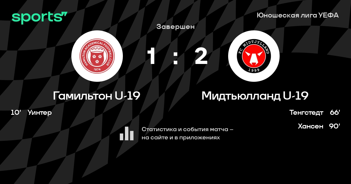 Трансляция Гамильтон U-19 - Мидтьюлланд U-19