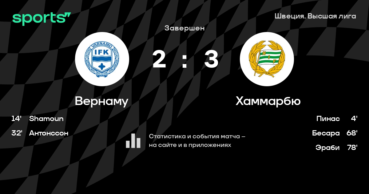 Вернаму – Хаммарбю: Хаммарбю не проигрывает в 5 из 7 последних матчей против этого соперника в гостях