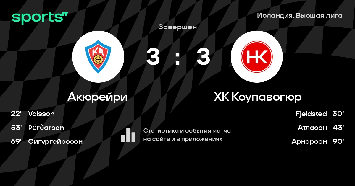 Auðunsson - Булатович, Árnason, Gudmundsson, Kári Gautason - Mikael Breki Þórðarson, Хафстейнссон, Стейнгримссон, Valsson, Уиллард - СигургейрссонЗапасные: Jajalo, Адальстейнссон, Родри, Стефанссон, Sævarsson, Адальстейнссон, Кьяртанссон