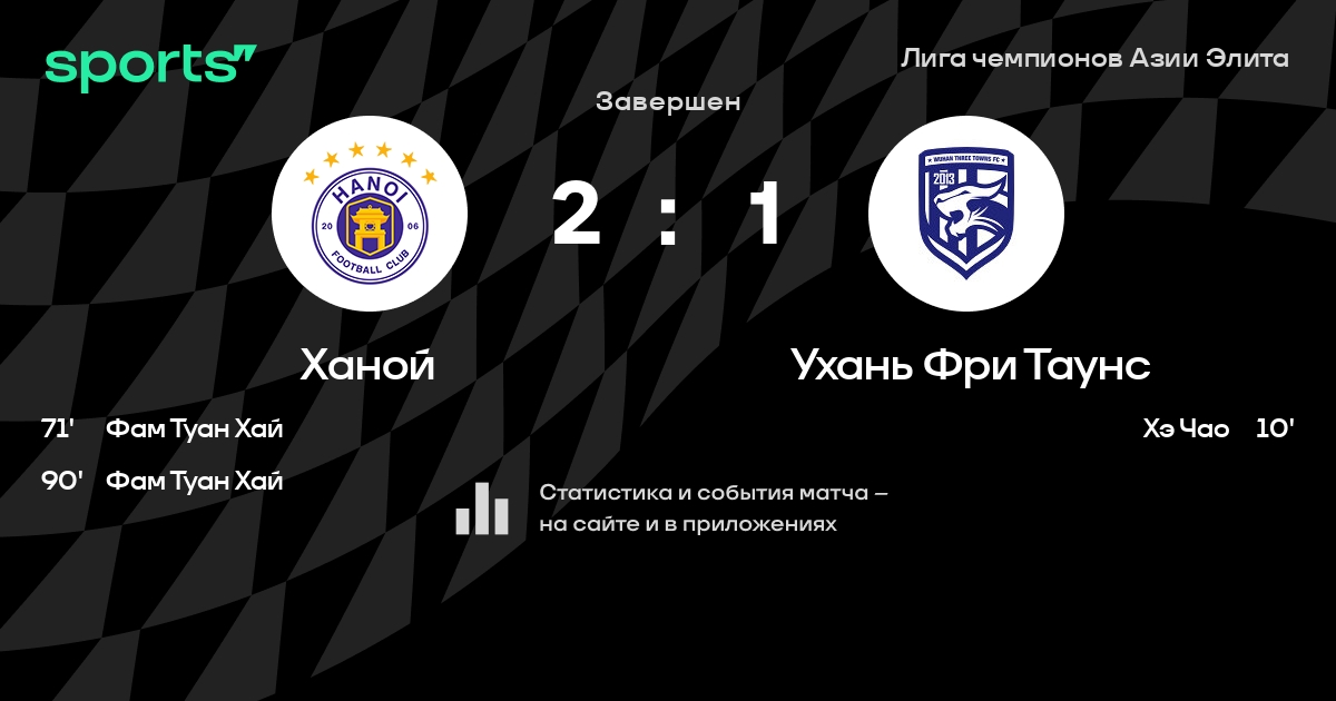 Результат прошлой игры в турнире «Лига чемпионов Азии»: Ухань Фри Таунс – Ханой 2:1. После 3 туров Ухань Фри Таунс набирает 4 очков и занимает 3 место в турнире. Лучший бомбардир команды – Абдул-Азиз Якубу: он забил 16 в 26 матчах. В 3 последних матчах в турнире «Лига чемпионов Азии» Ухань Фри Таунс обязательно забивает. Ухань Фри Таунс пропускает в 3 последних матчах в турнире «Лига чемпионов Азии». В последних 5 играх Ухань Фри Таунс забивает 11 голов. В последних 5 играх Ухань Фри Таунс пропускает 8 голов.
