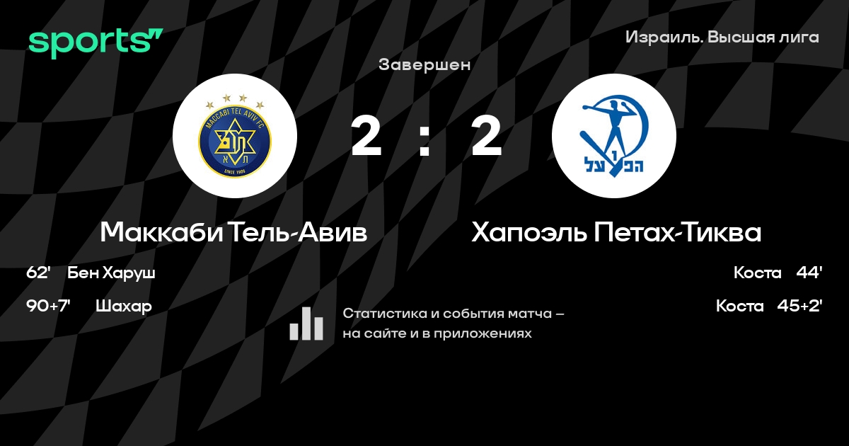 Маккаби Тель-Авив – Хапоэль Петах-Тиква: Маккаби Тель-Авив не пропускает в 4 последних матчах против этого соперника