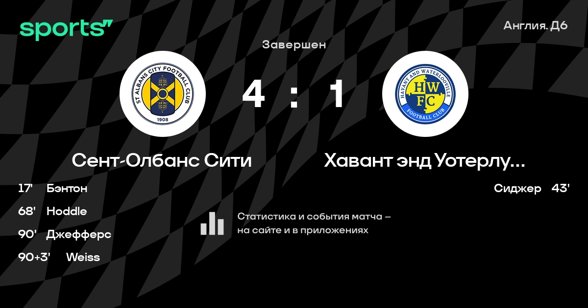 Сент-Олбанс Сити – Хавант энд Уотерлувилл: Сент-Олбанс Сити забивает в 11 последних матчах против этого соперника