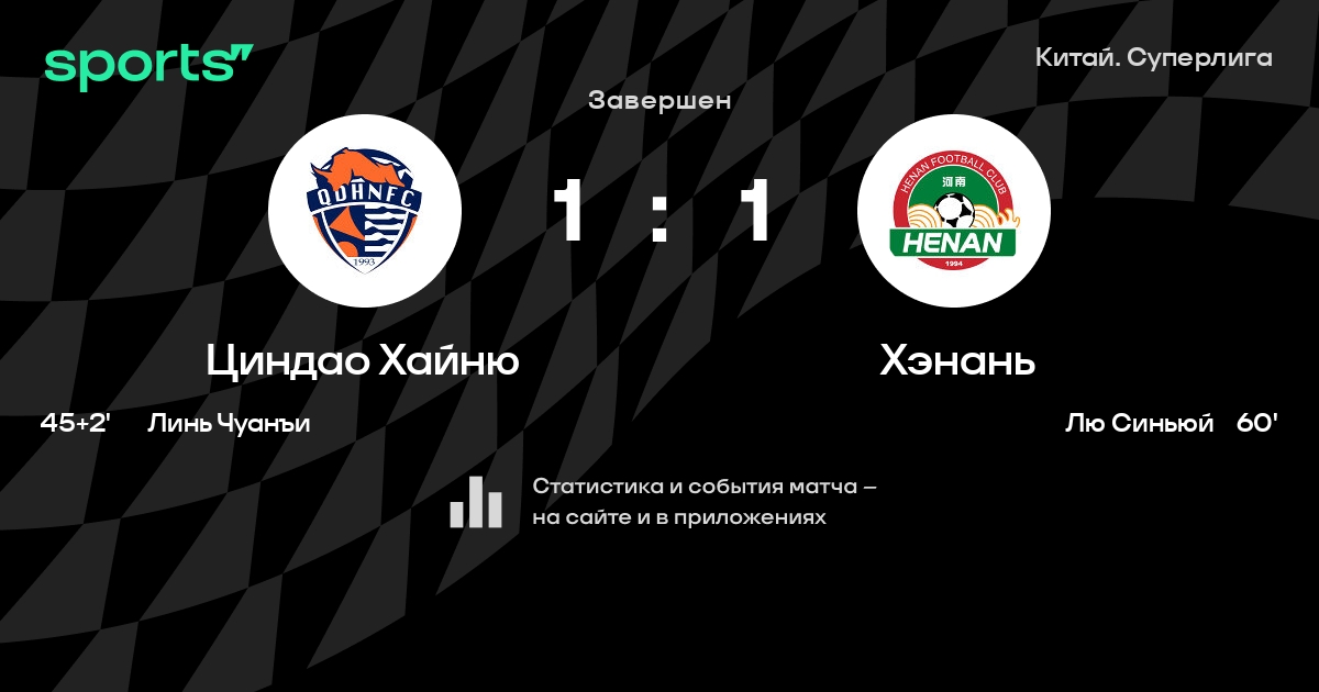 Результат прошлой игры в турнире «Суперлига»: Циндао Хайню – Шанхай Шэньхуа 0:2. После 22 туров Циндао Хайню набирает 15 очков и занимает 15 место в турнире. Лучший бомбардир команды – Веллингтон: он забил 8 в 22 матчах. В последних 5 играх Циндао Хайню забивает 7 голов. В последних 5 играх Циндао Хайню пропускает 5 голов.