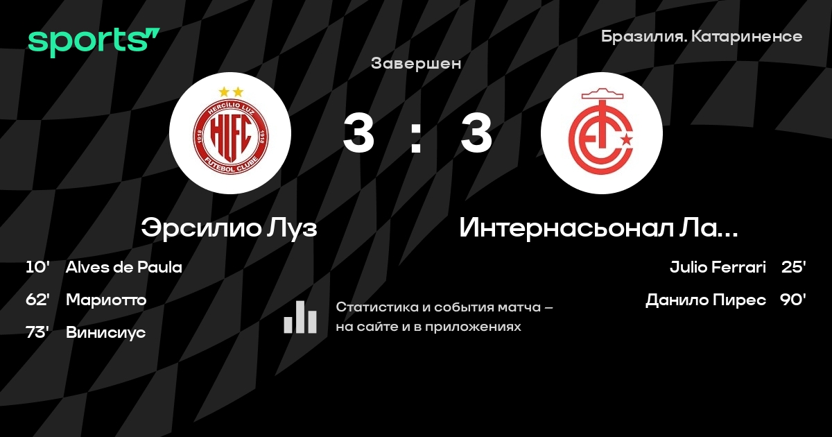 Эрсилио Луз – Интернасьонал Лажис: коэффициенты