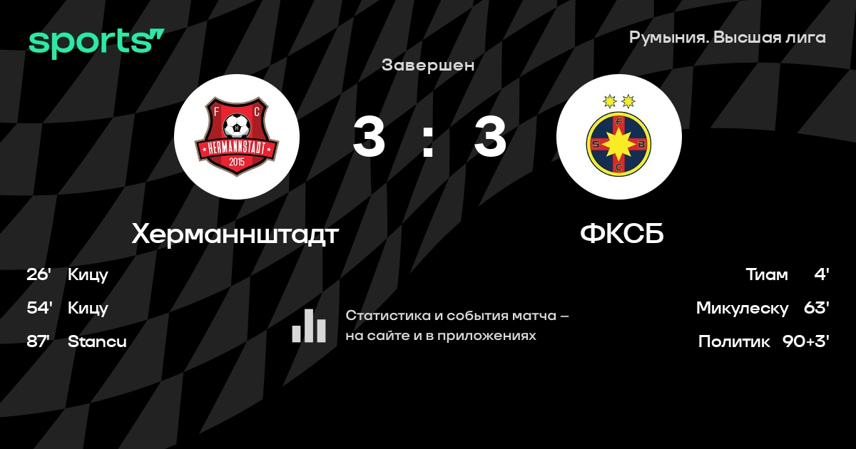 Херманнштадт – ФКСБ: Херманнштадт забивает в 3 последних матчах против этого соперника