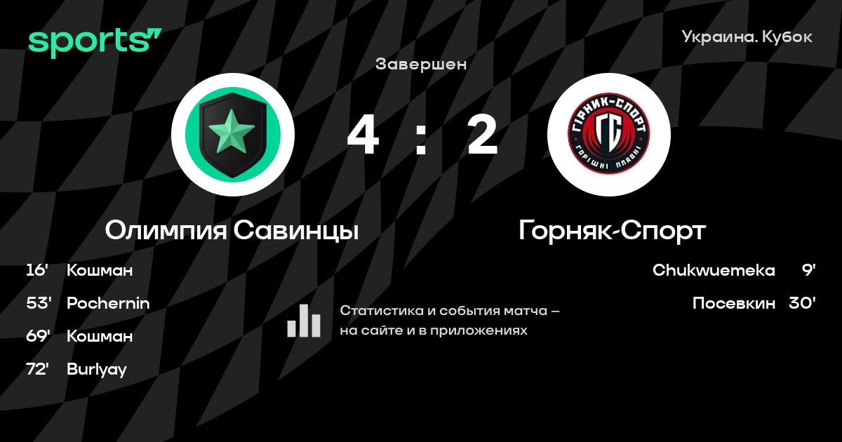 Олимпия Савинцы - Горняк-Спорт: статистика матча