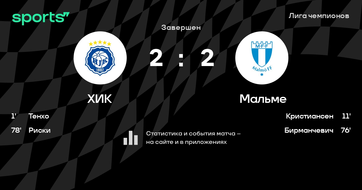 В последних 5 играх ХИК забивает в среднем 2.20 гола за игру