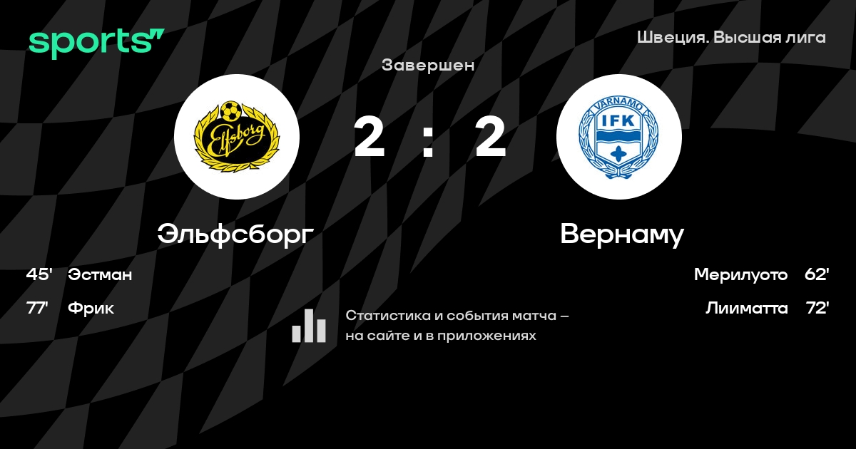 Эльфсборг – Вернаму: Вернаму не проигрывает в 5 из 7 последних матчей против этого соперника