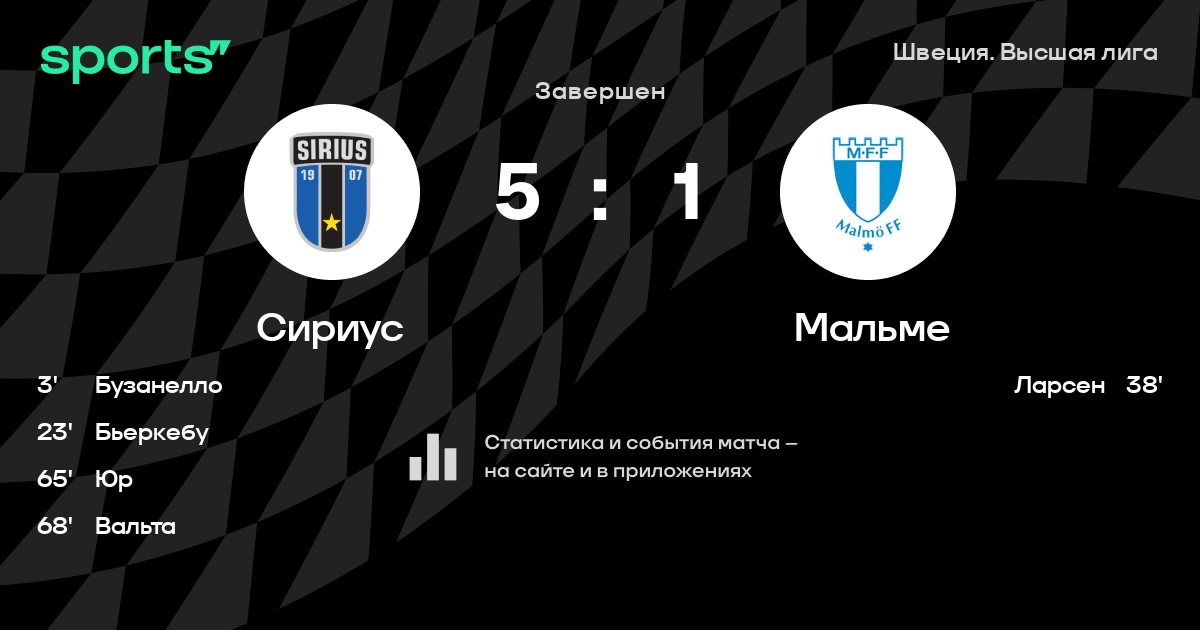 Результат прошлой игры в турнире «Аллсвенскан»: Юргорден – Сириус 8:2. После 25 туров Сириус набирает 26 очков и занимает 13 место в турнире. Лучший бомбардир команды – Лео Вальта: он забил 11 в 25 матчах. В 9 последних матчах в турнире «Аллсвенскан» Сириус обязательно забивает. В последних 5 играх Сириус забивает 10 голов. В последних 5 играх Сириус пропускает 14 голов.