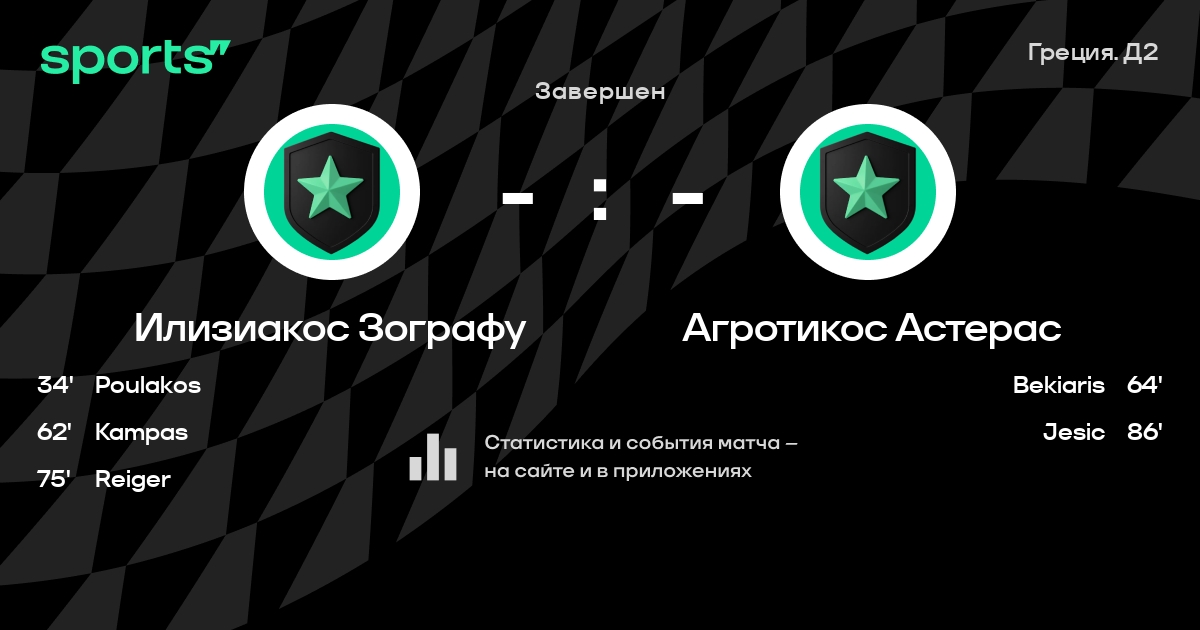 Илизиакос Зографу – Агротикос Астерас: коэффициенты