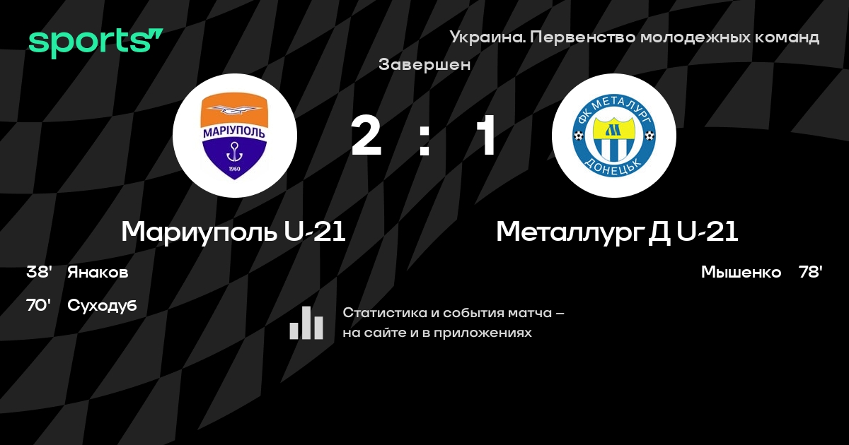 Мариуполь U-21 – Металлург Д U-21: коэффициенты
