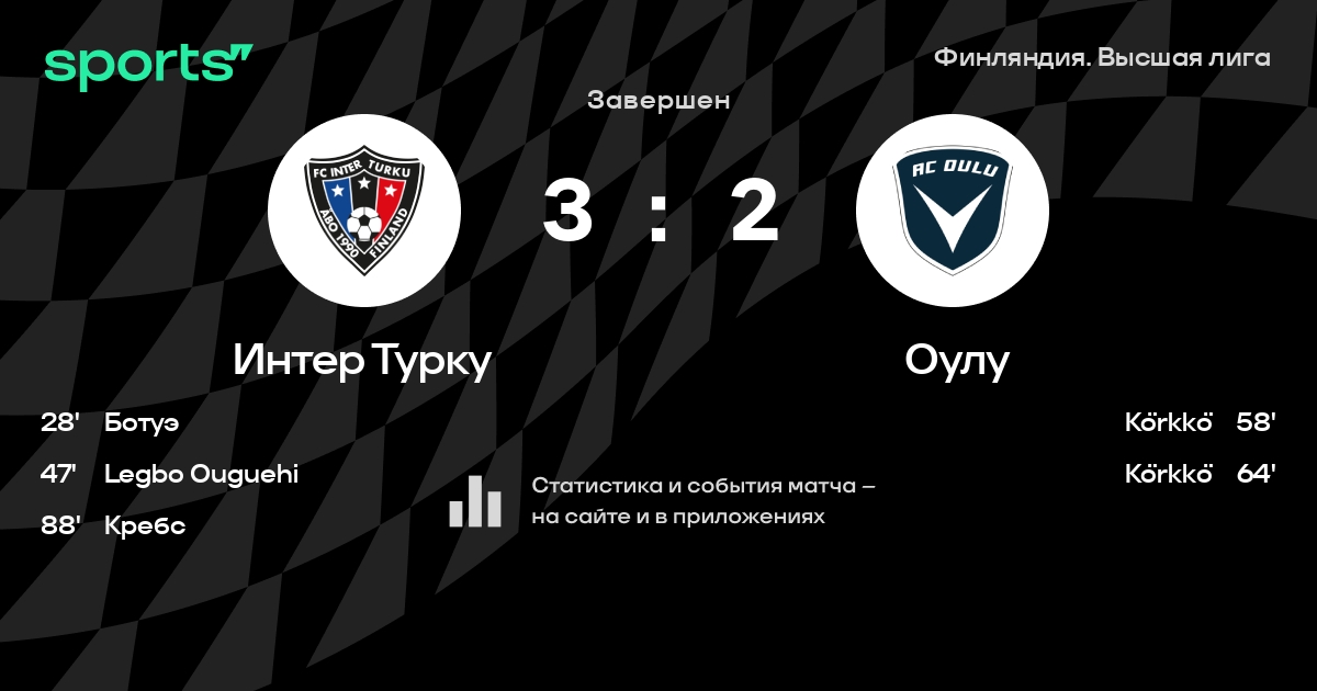 Интер Турку – Оулу: Оулу забивает в 8 последних матчах против этого соперника