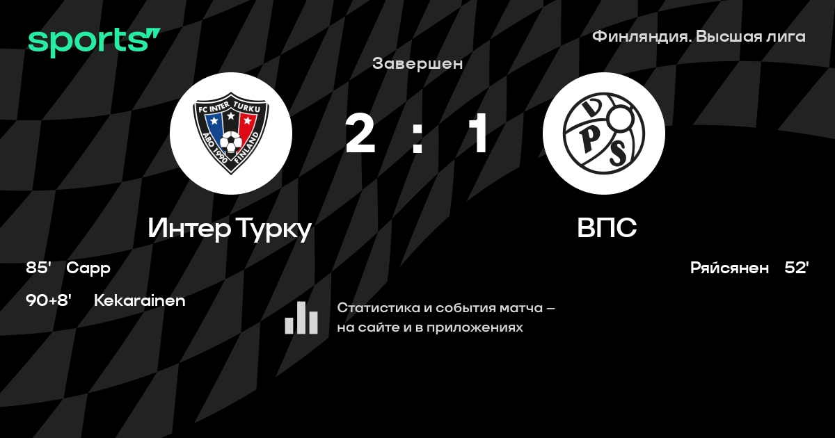 Интер Турку – ВПС: ВПС не проигрывает в 10 из 12 последних матчей против этого соперника в гостях в турнире «Высшая лига»