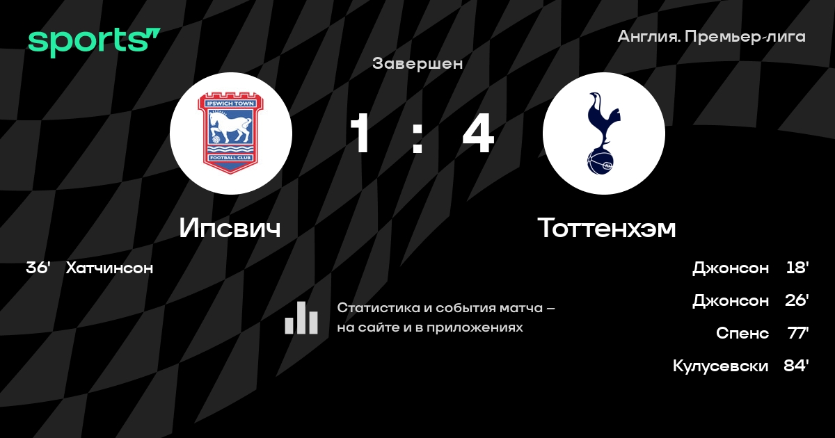 Джонсон набрал 11 очков за дубль «Ипсвичу». Полузащитник «Тоттенхэма» впервые в году забил в АПЛ
